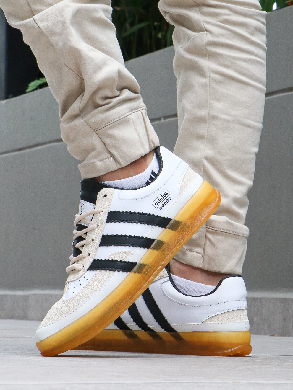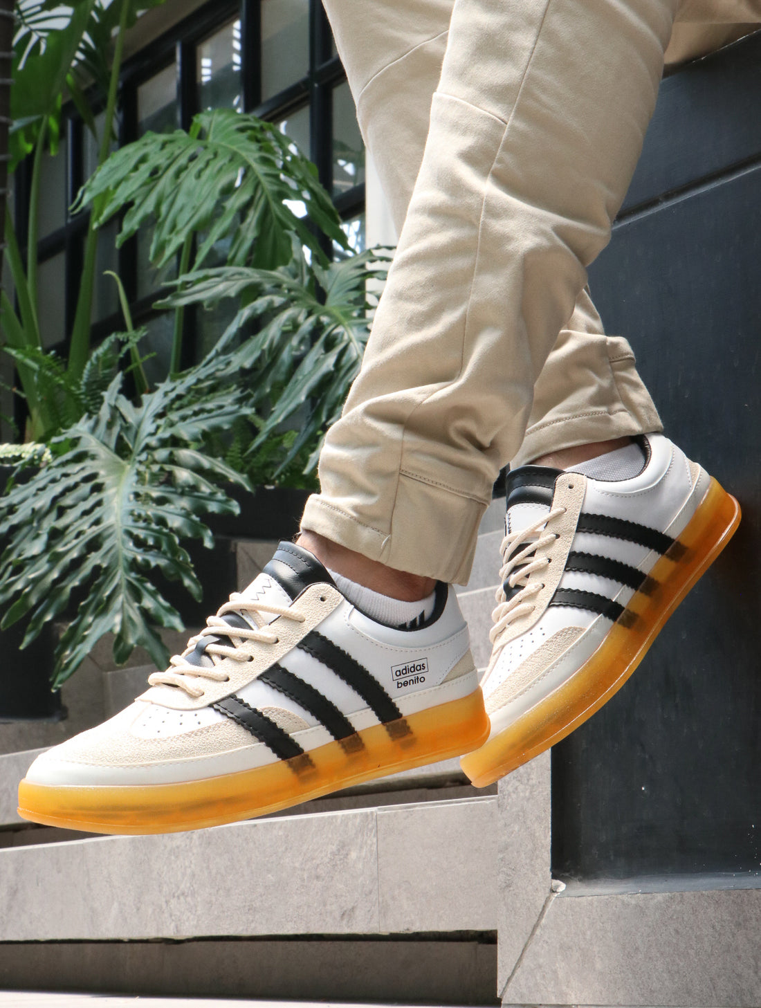 Tres franjas bordadas en zigzag que rinden homenaje al legado Adidas.
